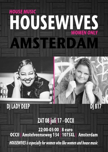 HOUSEWIVES IS SPECIAAL VOOR DE HOUSELIEFHEBBERS. OP EEN SPANNENDE LOCATIE AAN DE AMSTELVEENSEWEG 134. IN HET GEBOUW VAN OCCII GAAN WE OP ZATERDAG 8 JULI | en 9 DEC HELEMAAL LOS. ZORG DAT JE ERBIJ BENT !! NO LIMITS VOOR ONZE DJ’S